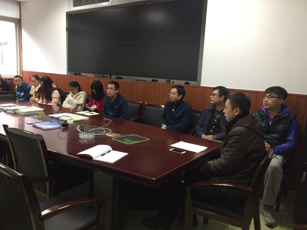 唐聃首先就同学们在学习上碰到的各种问题提出了自己的建议和意见。分别从研三的论文与答辩准备、研二的开题报告时间安排和研一的课程学习与研究方向确定发表了自己的看法。在会上,同学们对于老师们的授课情况都非常满意。