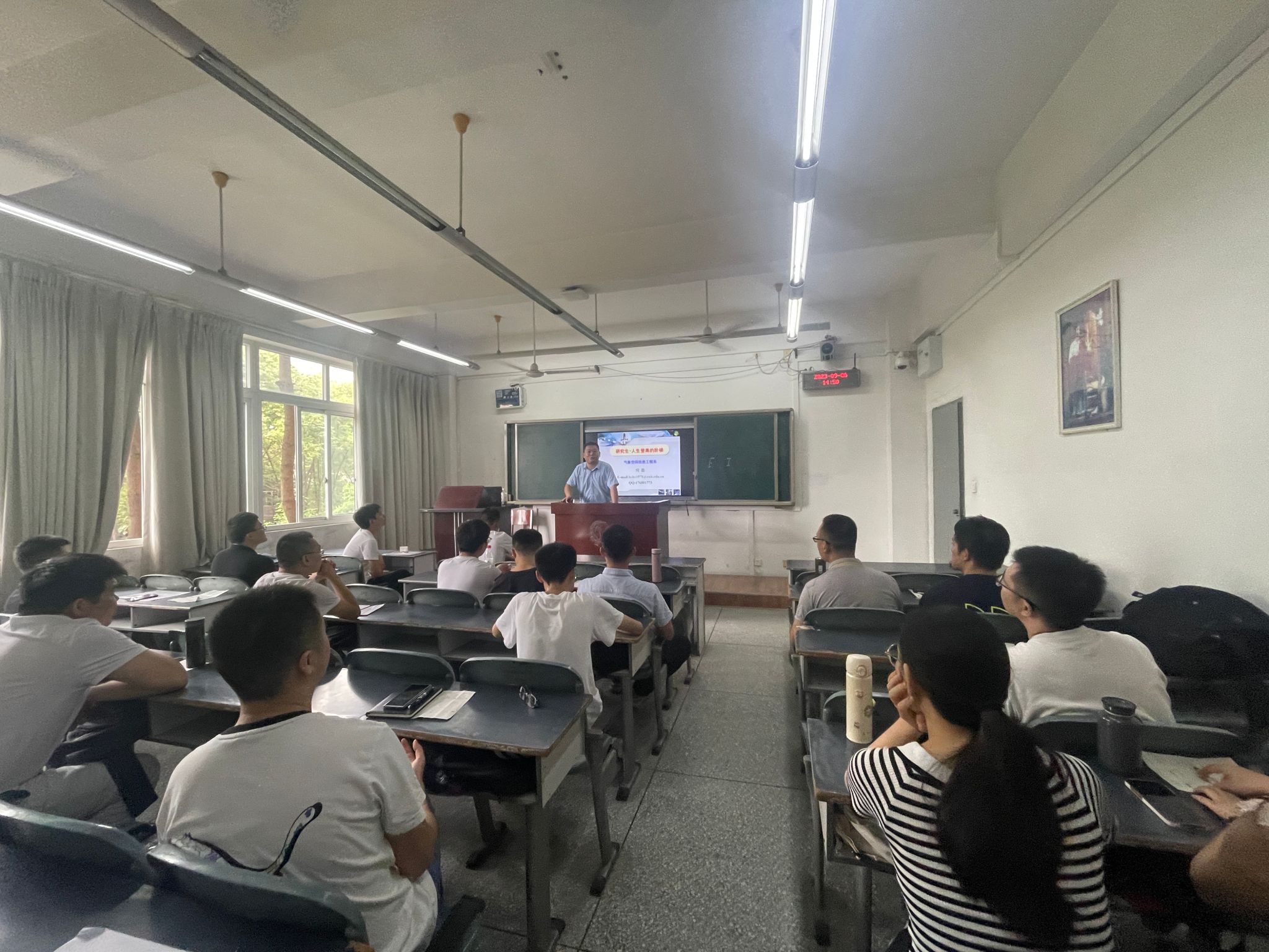 为帮助研究生新生尽快适应研究生生活,2023年9月6日-7日,我院在信达楼举行2023级新生专业教育会。数据科学与工程系主任王亚强和气象空间信息工程系主任何磊,辅导员万娟及2023级太平洋在线登录全体研究生新生参加会议。