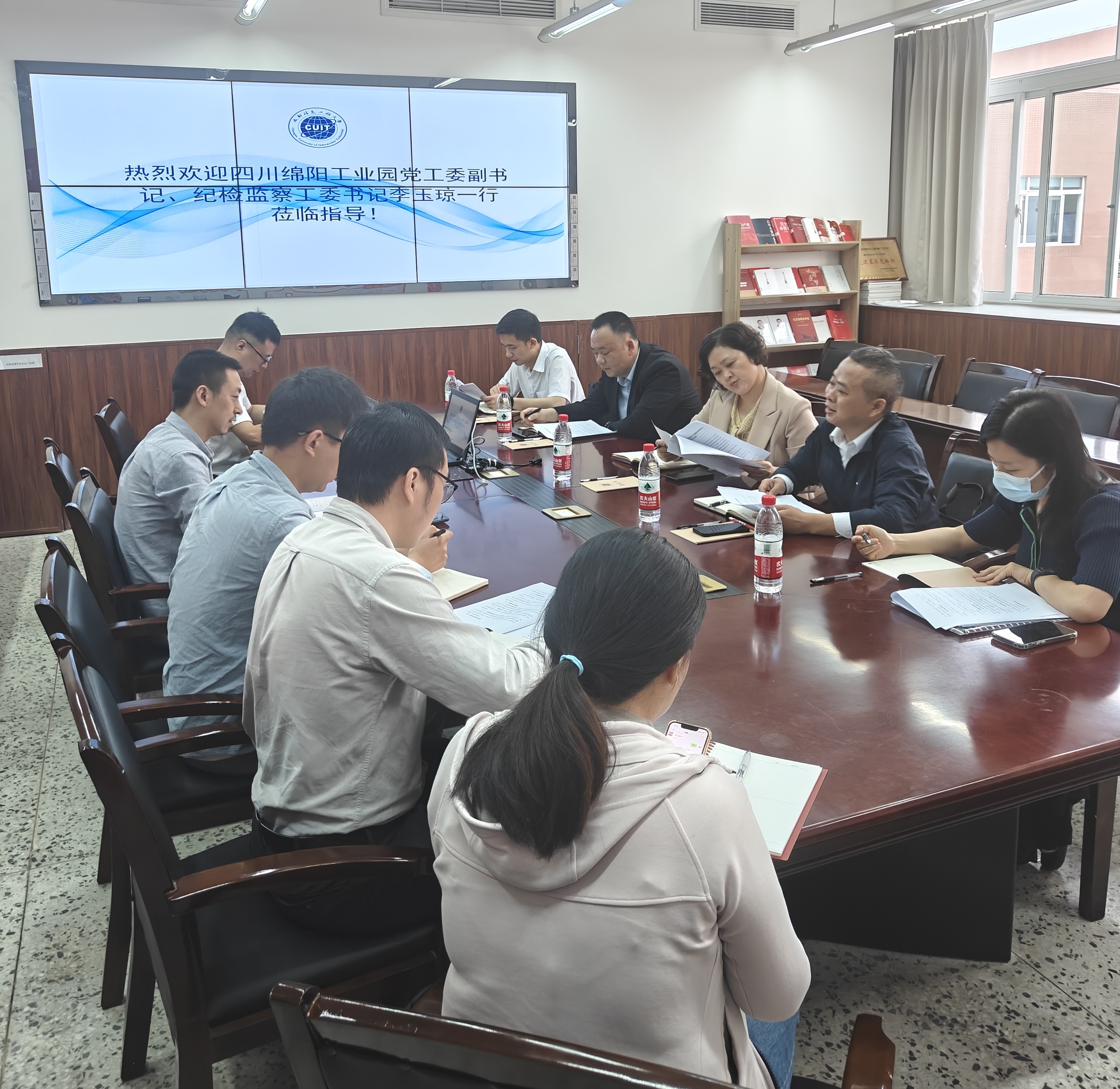 2024年5月10日,四川绵阳工业园党工委副书记李玉琼一行抵达太平洋在线登录进行交流,会议在信达楼B505召开,唐聃院长主持会议。